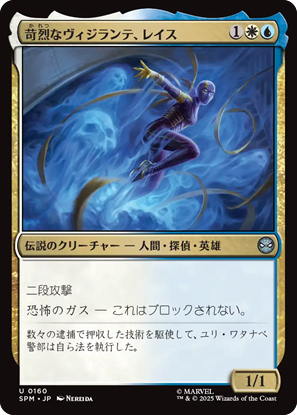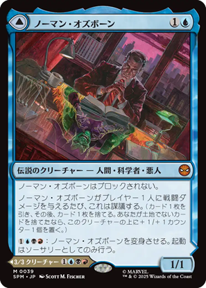 固有色「青」単色には10枚。悪いツラをした野郎どもが揃っています。ミステリオは、もっと見せかけの能力を盛っても良かったか? コンボ色が強そうな《予知能力者、マダム・ウェブ》が悪いことできそうです。