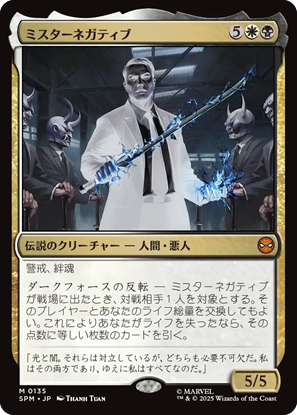 対抗色は少なめの6枚。気になる一枚がコレ《ミスターネガティブ》。圧倒的ライフ有利なプレイヤーとライフ交換できるのがヤバい。むしろ自らライフを支払いまくって交換したっていい。