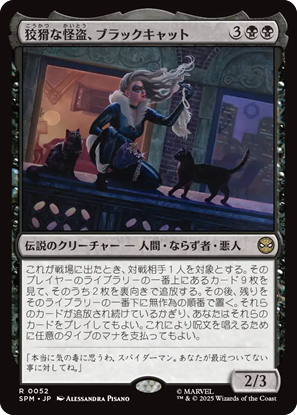 固有色「黒」単色統率者は11枚。さすがに黒には極悪人が揃ってます。気になる統率者は《狡猾な怪盗、ブラックキャット》。相手のデッキからカードを奪う能力ですが、なんと9枚もの中から2枚も奪えるのすごい。