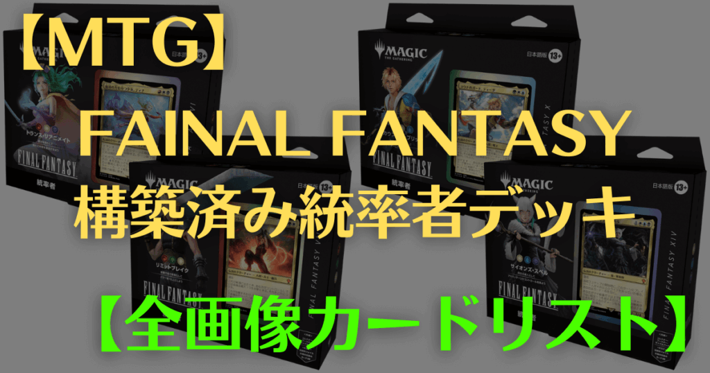 【MTG】ファイナルファンタジー構築済み統率者デッキ カードリスト【EDH】 4か月前 マジック:ザ・ギャザリングとFAINAL FANTASYとのコラボセット、構築済み統率者デッキの全カードリストをまとめました。この商品は2025年6月13日に公式発売されましたが、人気商品で品薄状態になっています。しかし […]