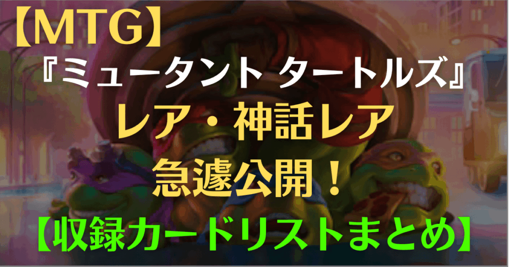 【MTG】ミュータント タートルズ レア・神話レア公開! 【カードリストまとめ】 2か月前 発売日2026年3月6日、『マジック:ザ・ギャザリング | ミュータント タートルズ』。ご存じの方も多いかと思いますが、『ローウィンの昏明』のプレリリースキットに、『マジック:ザ・ギャザリング | ミュータント タートル […]