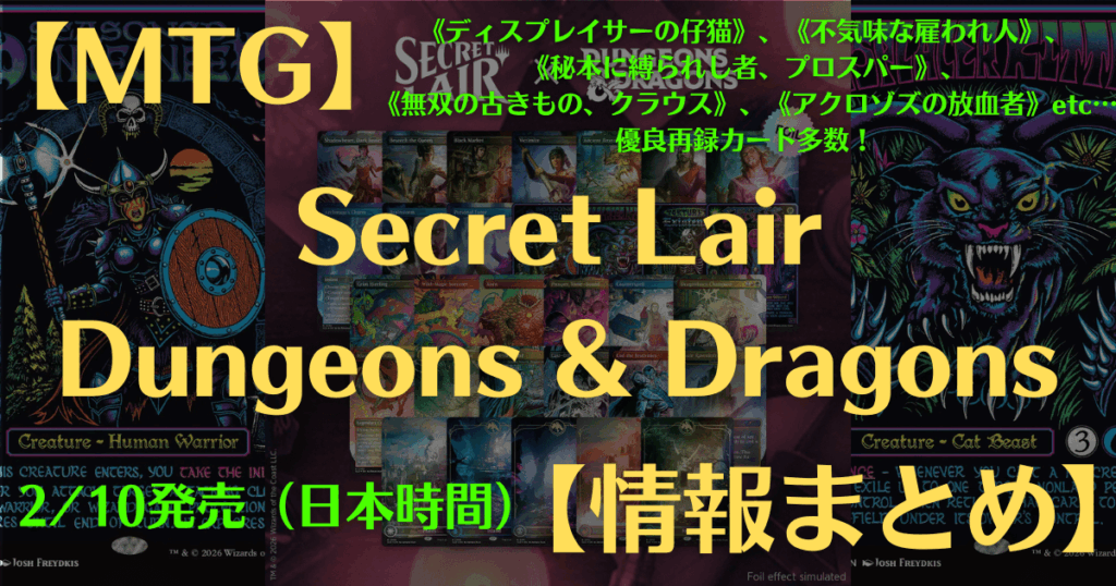 【MTG】Secret Lair x Dungeons & Dragons情報まとめ【2/10発売】 1か月前 マジック:ザ・ギャザリングとダンジョンズ&ドラゴンズのコラボ、Secret Lair: Roll for Initiative Superdropの発売が発表されました!7つの新しいシークレットレイアーが登場しま […]